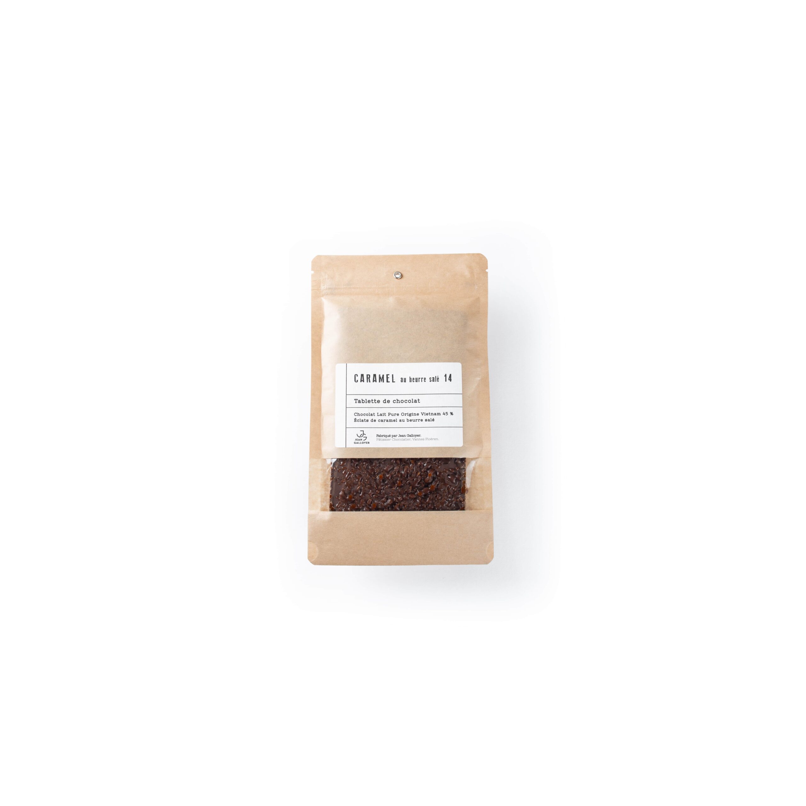 Chocolat lait pure origine Vietnam 45 %, éclats de caramel au beurre salé