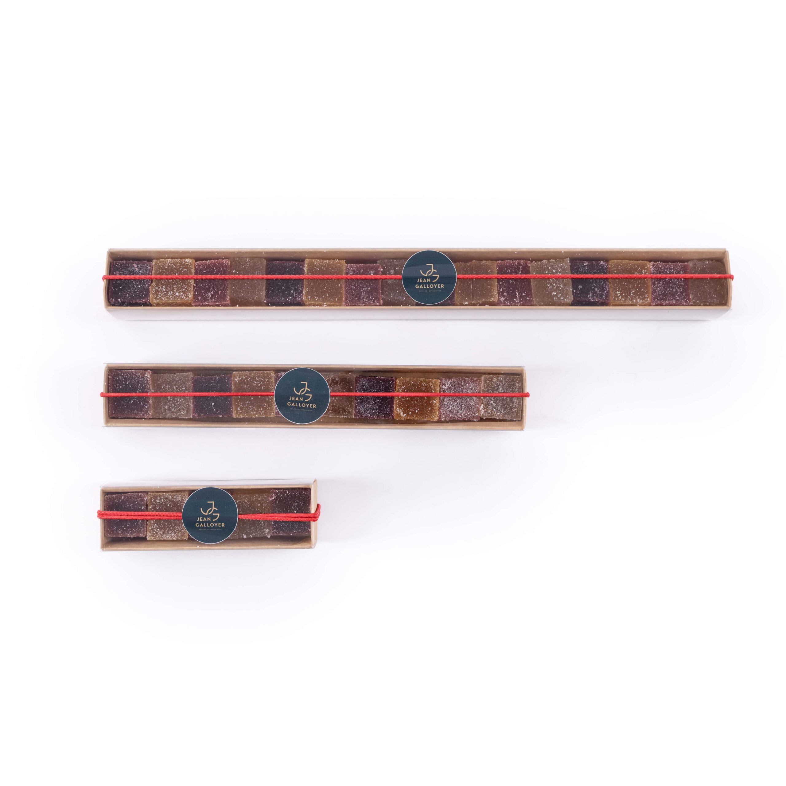 Coffret de 24 pâtes de fruits assortis. Fraise, framboise, citron, mangue/passion